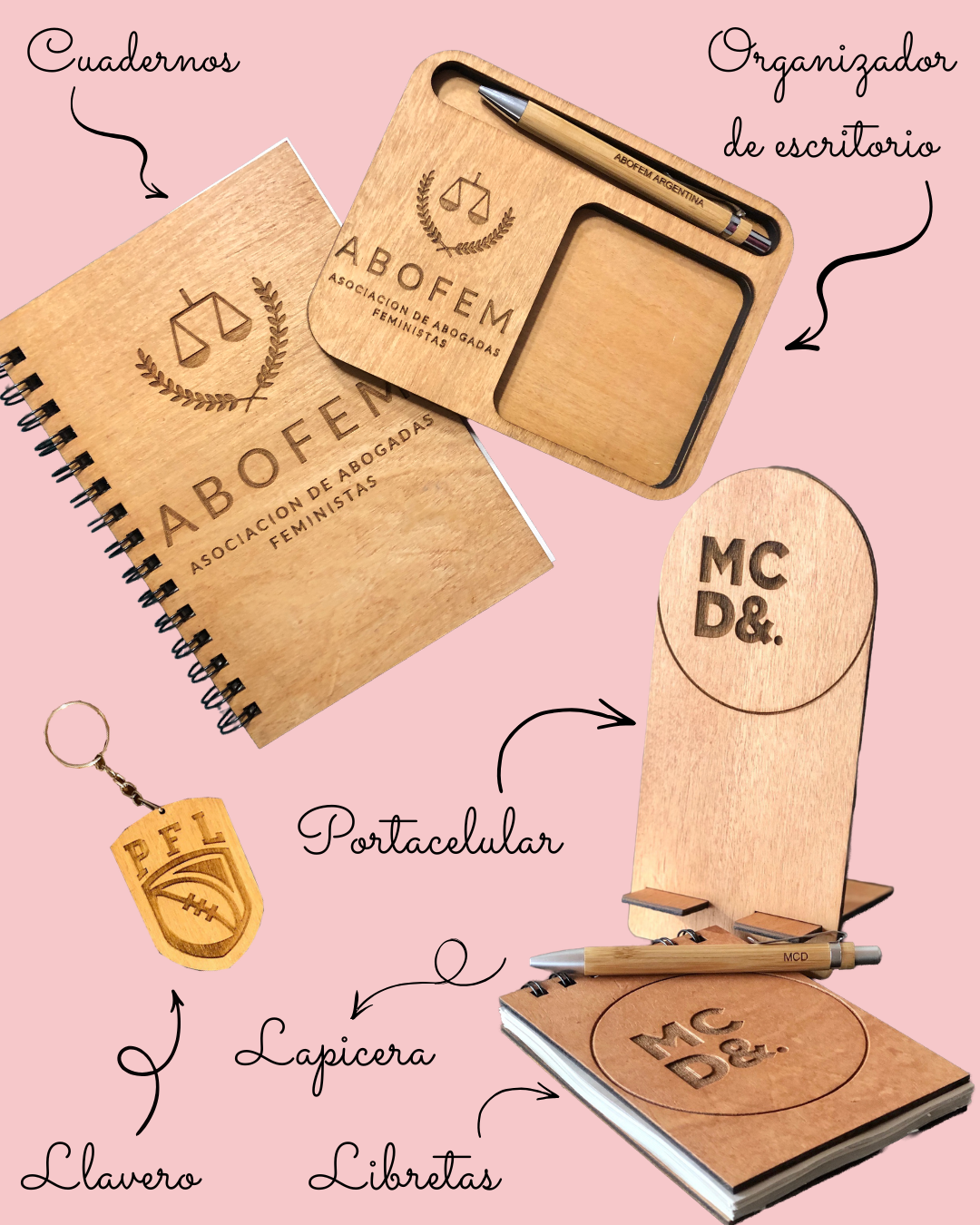 No te olvides de mirar los productos complementarios! También podemos hacer otras cosas personalizadas: cuadernos, llaveros, porta celular y más.