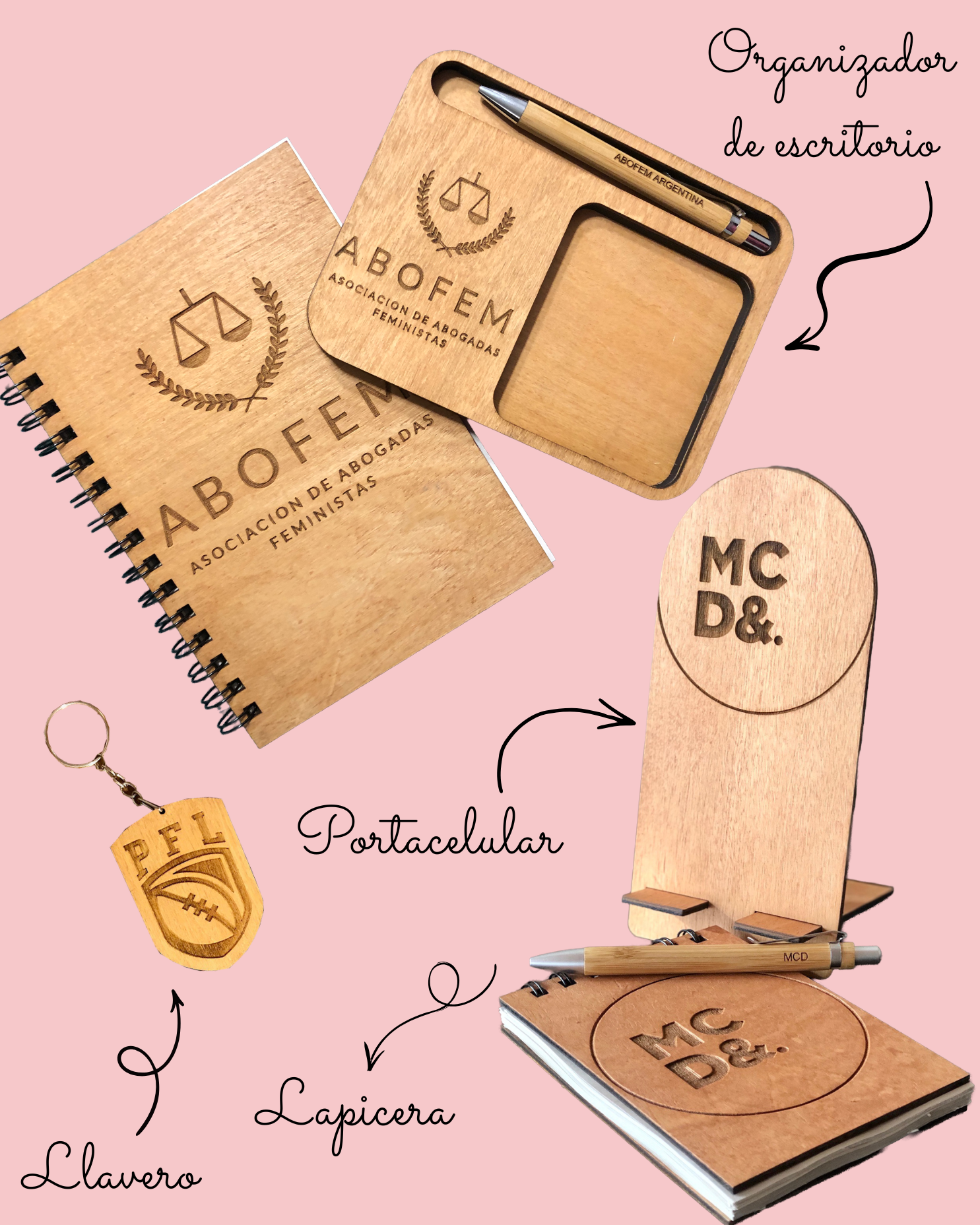 No te olvides de mirar los productos complementarios! También podemos hacer otras cosas con tu logo: llaveros, lapiceras, organizador de escritorio, porta celular y más.