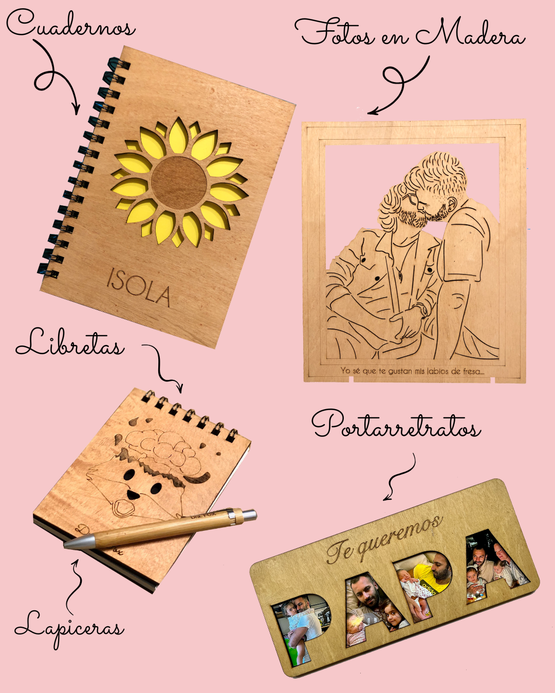 No te olvides de mirar los productos complementarios! También podemos hacer otras cosas personalizadas: cuadernos, organizadores de escritorio, fotos y más.